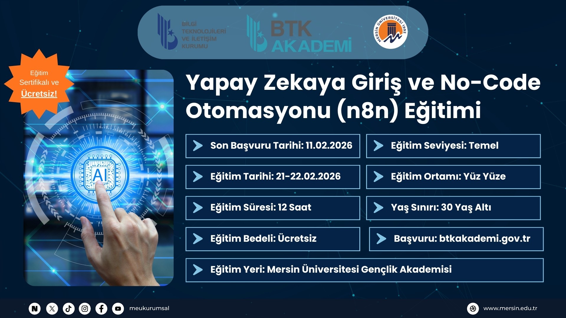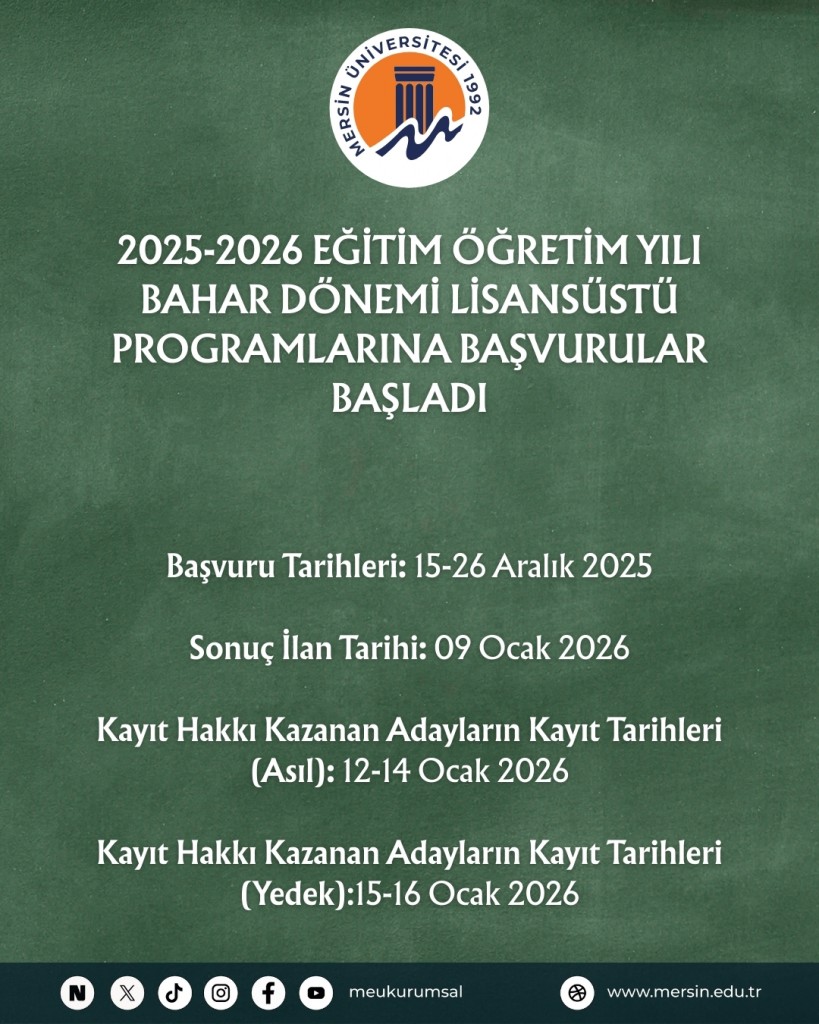MERSİN ÜNİVERSİTESİ 2023-2024 EĞİTİM-ÖĞRETİM YILI GÜZ YARIYILI LİSANSÜSTÜ TEZSİZ YÜKSEK LİSANS PROGRAMLARINA BAŞVURU DUYURUSU