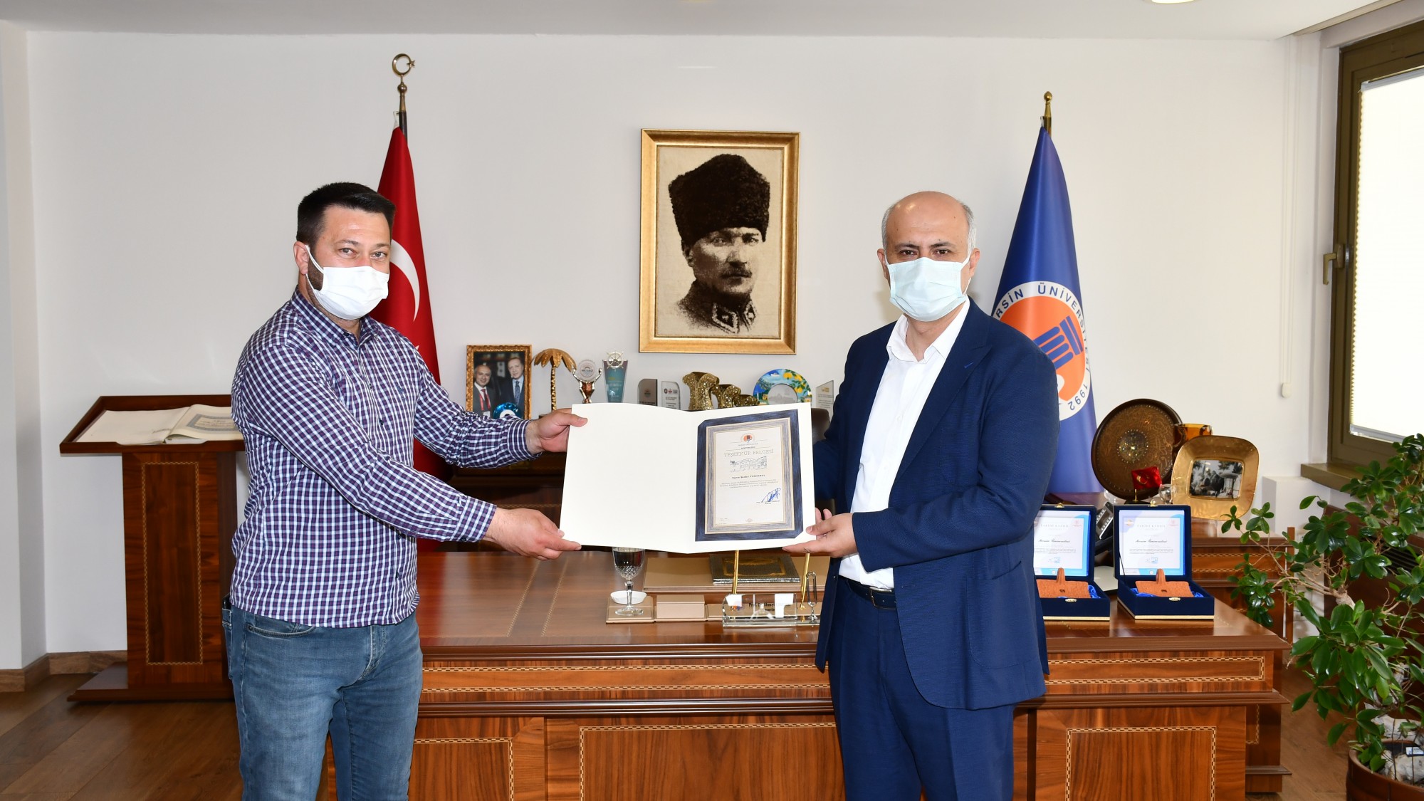 Rektörümüz Prof. Dr. Ahmet Çamsarı da Prof. Dr. Mukadder Çalıkoğlu ve Şadan Çalıkoğlu’na vefat eden Şakir Yurdakul için başsağlığı dileklerini iletti ve bu vesileyle de Su Ürünleri Fakültemize gerçekleştirmiş olduğu katkılardan dolayı teşekkürleri sunarak kendilerine birer teşekkür belgesi takdim etti.