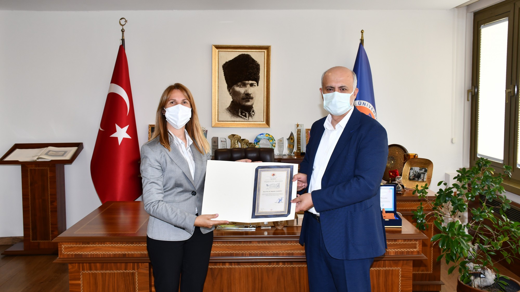 Rektörümüz Prof. Dr. Ahmet Çamsarı Üniversitemiz Su Ürünleri Fakültesi’ne Yapmış Olduğu Katkılardan Dolayı Prof. Dr. Mukadder Çalıkoğlu’na Teşekkür Belgesi Takdim Etti