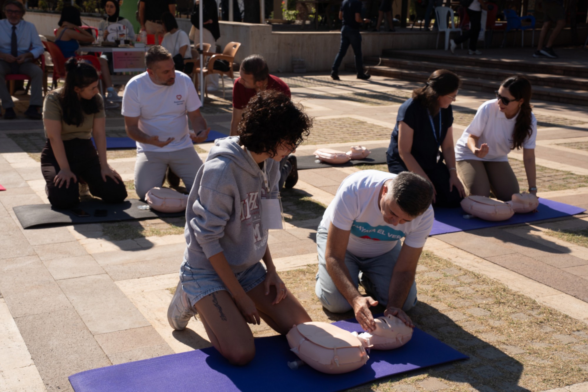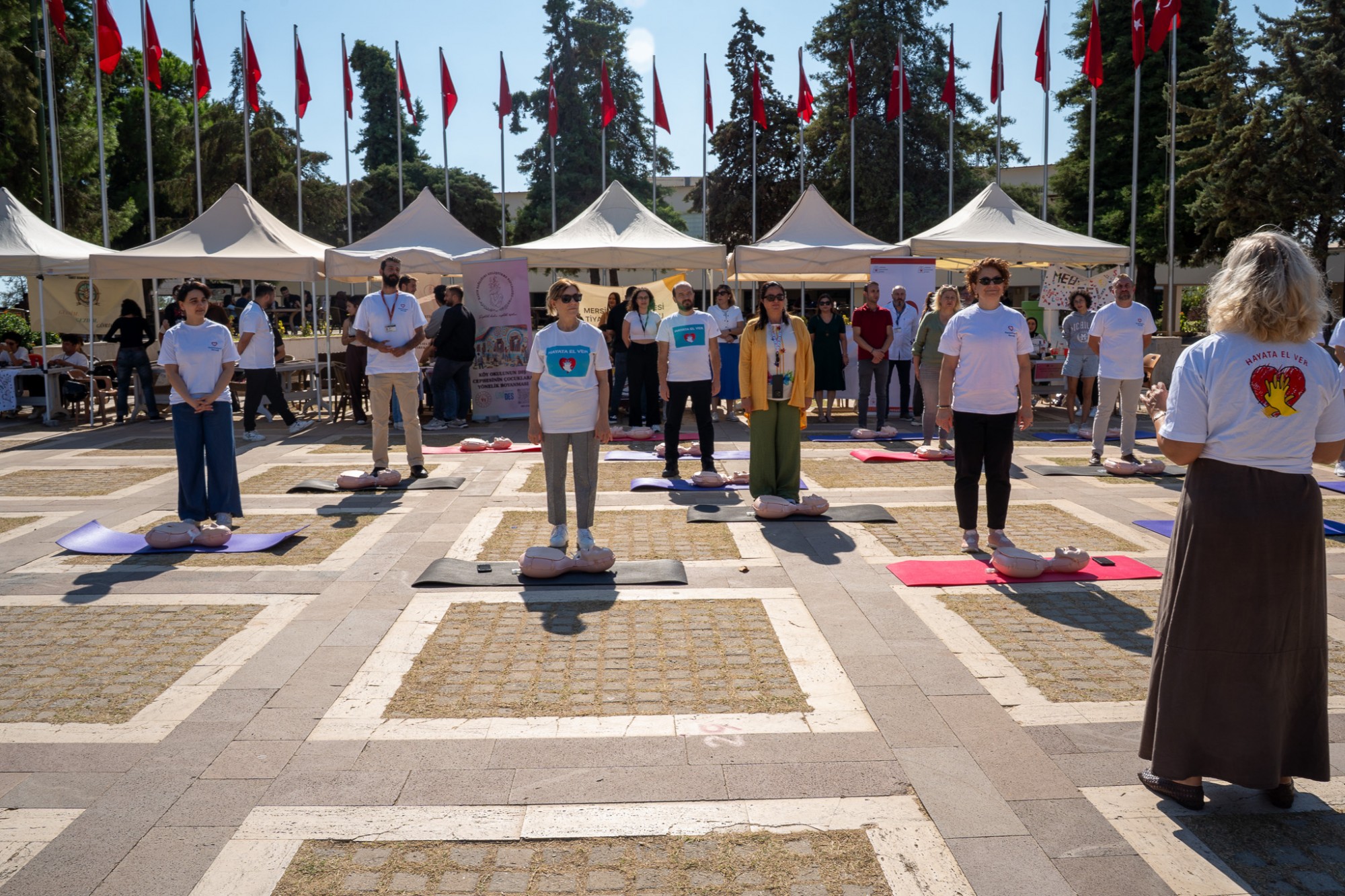 Etkinlikte, ani kalp durması durumlarında yapılması gereken Temel Yaşam Desteği (TYD) uygulamalarının toplumun geniş kesimlerine öğretilmesi ve erken müdahale bilincinin artırılması amaçlandı. Bu kapsamda, Tıp Fakültemiz Anesteziyoloji ve Reanimasyon Anabilim Dalı akademik personeli ile Resüsitasyon Derneği üyeleri tarafından gönüllü katılımcılara temel yaşam desteği uygulamaları öğretildi.