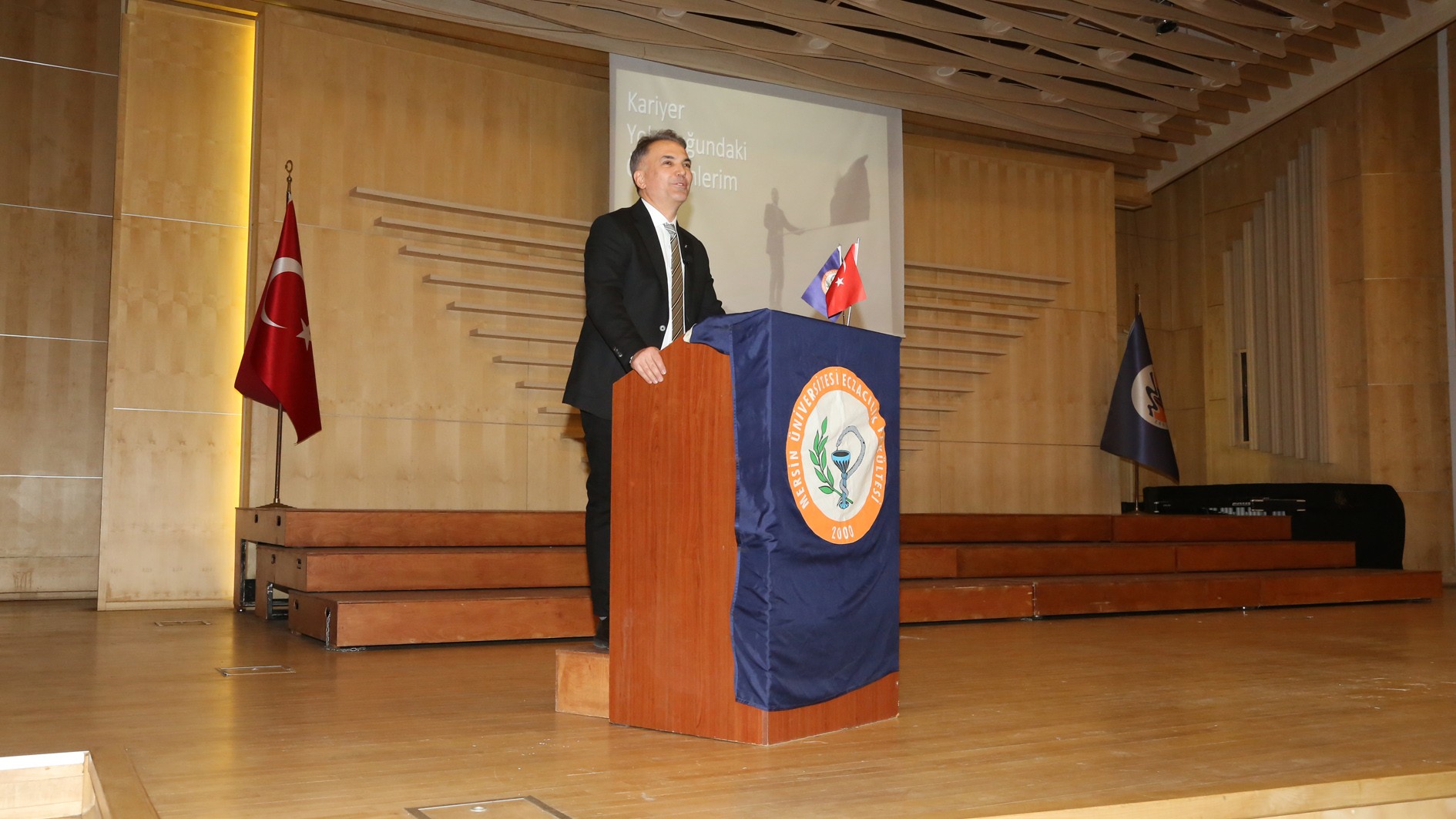 Üniversitemiz Eczacılık Fakültesi, kariyer günleri etkinlikleri kapsamında Eczacıbaşı İlaç Pazarlama Genel Müdürü Dr. Ecz. Başbuğ Öke’nin konuşmacı olarak katıldığı “Kariyer Yolculuğundaki Öğrenimlerim” başlıklı bir konferans düzenledi.