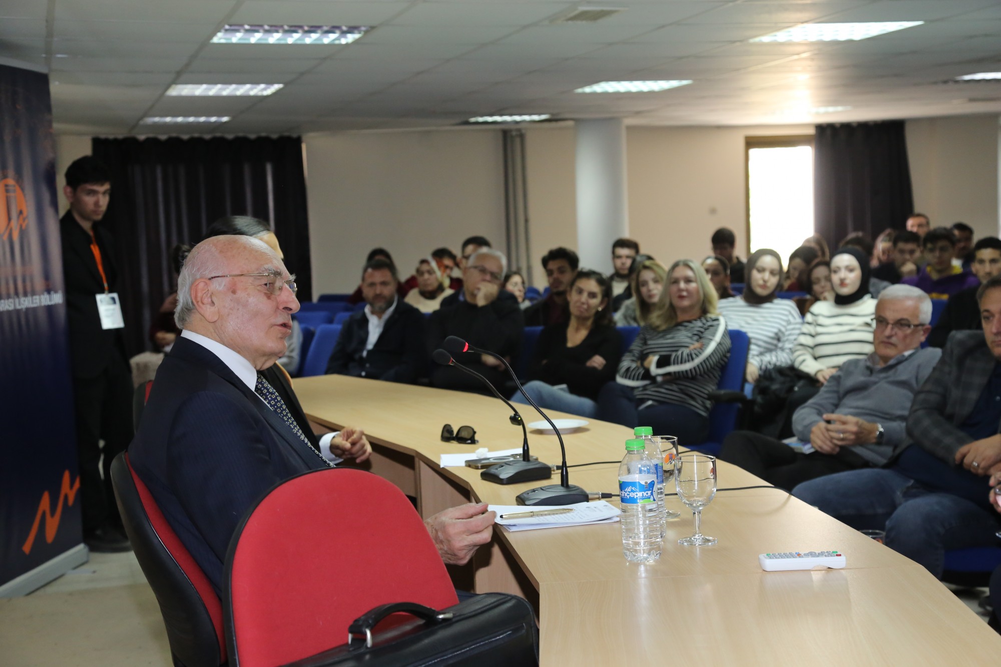 Ankara Üniveisitesi Siyasal Bilgiler Fakültesinde dekanlık görevinde bulunmuş, uzun yıllar boyunca çeşitli devlet kurumlarında dersler vermiş olan Prof. Dr. Ruşen Keleş, konferansta Avrupa Birliği’ndeki yerel yönetim uygulamaları ile Türkiye’deki yerel yönetim yapısını karşılaştırmalı olarak ele aldı. Türkiye’nin kendine özgü demografik, ekonomik ve güvenlik ihtiyaçları çerçevesinde Avrupa Birliği ülkeleriyle benzeşen ve farklılaşan yönlere dikkat çeken Prof. Dr. Keleş, konuşmasını Gazi Mustafa Kemal Atatürk’ün “Hayatta en hakiki mürşit ilimdir.” sözüyle sonlandırarak katılımcılara teşekkür etti.