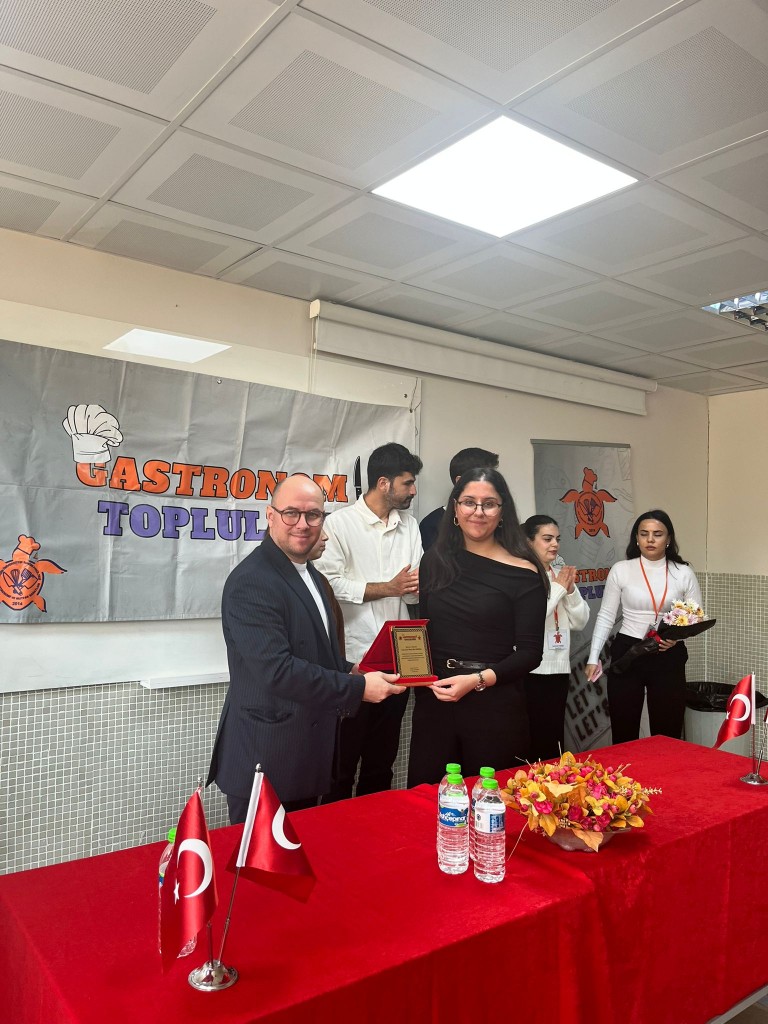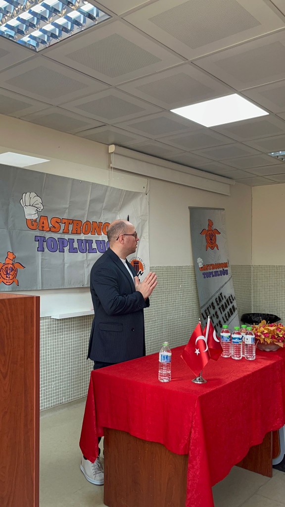 Gastronomi ve Mutfak Sanatları alanında güncel yaklaşımların ele alındığı “Yerelden Küresele Gastronomi” başlıklı söyleşi, Mersin Üniversitesi Turizm Fakültesi Gastronomi ve Mutfak Sanatları Bölümü bünyesinde, Gastronomi Topluluğu tarafından 25 Aralık 2025 Perşembe günü Mersin Üniversitesi Turizm Fakültesi 10 No’lu derslikte gerçekleştirilmiştir.  Etkinlik, Gastronometro Eğitmen Chefi Murat İlke ÖZİPEK’in katılımıyla fakülte öğrencileri ve akademik çevrenin yoğun ilgisiyle düzenlendi. Söyleşide; sürdürülebilir gastronominin kavramsal çerçevesi, bir mutfakta ürün seçiminin hangi kriterlere göre yapılması gerektiği ve yerel mutfak anlayışının küresel gastronomi sahnesine nasıl taşınabileceği kapsamlı biçimde ele alındı. Sürdürülebilirliğin yalnızca çevresel bir yaklaşım değil; aynı zamanda kültürel mirasın korunması, yerel üreticinin desteklenmesi ve mutfaklarda bilinçli karar alma süreçlerinin geliştirilmesiyle doğrudan ilişkili olduğu vurgulandı. Etkinlik, öğrencilerin ve katılımcıların soruları eşliğinde interaktif bir atmosferde tamamlanırken, gastronominin geleceğine yönelik farkındalık oluşturan ve ilham veren bir paylaşım ortamı sundu.